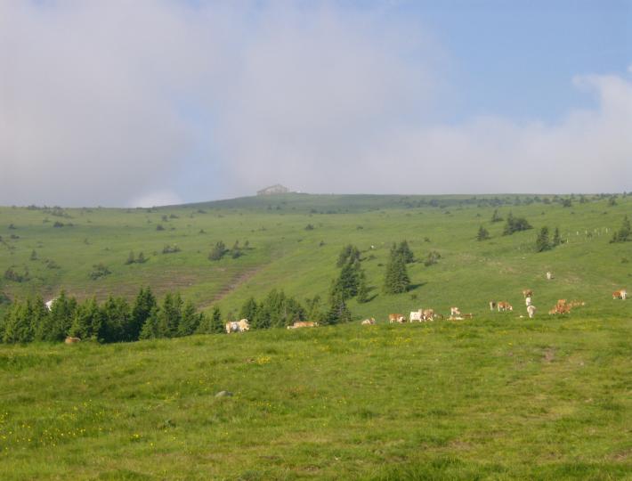 | Blick auf das Wetterkoglerhaus. Leichter Nebel zieht auf. |