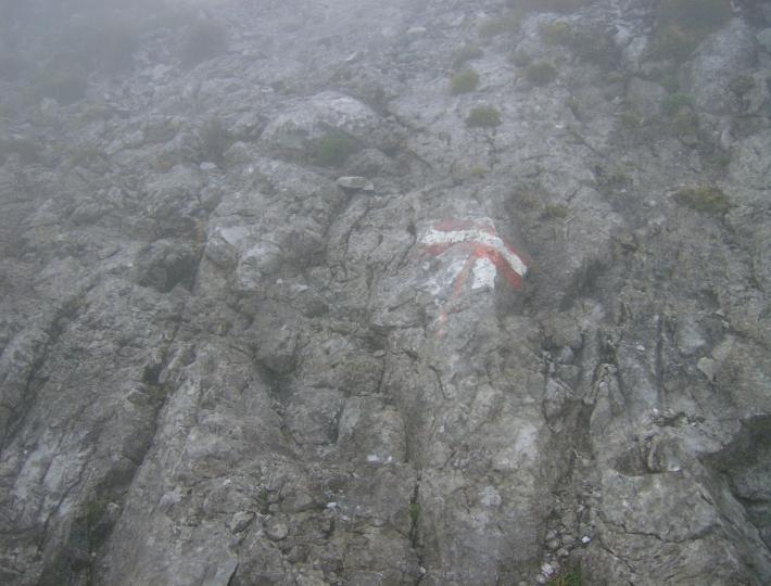 | Weiter gehts über rutschigen Fels, zum Glück sieht man nicht weiter als 5m. |