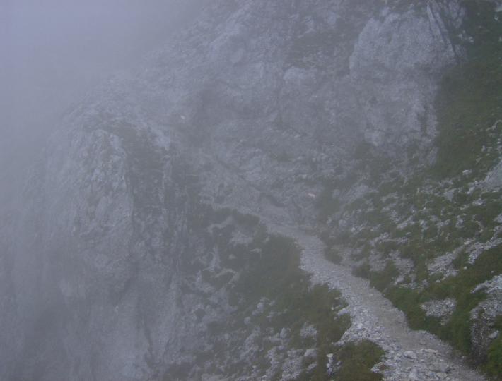 hier nochmal die "Schlüsselstelle" an der Westwand, diesmal mit Nebel.