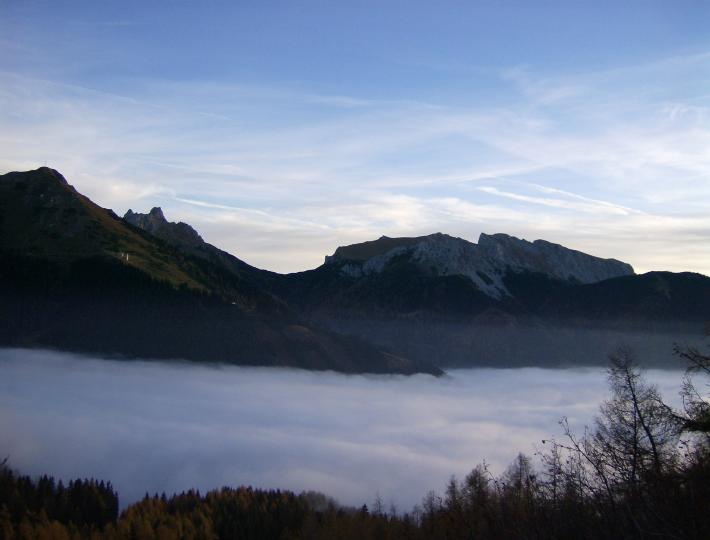 | Im Tal hängt noch der Nebel |