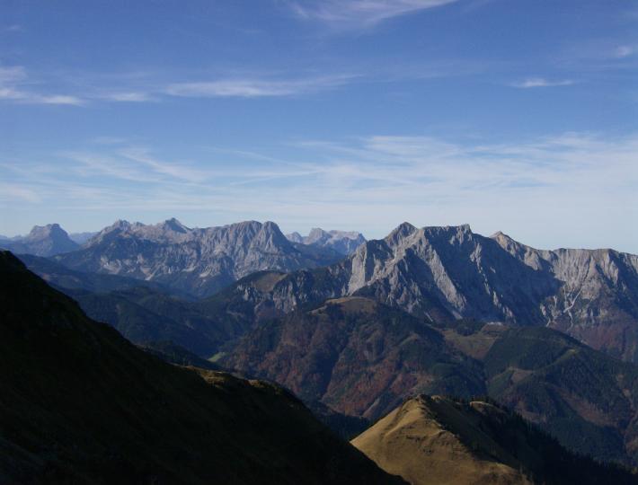 | Das Wetter ist einfach ein Traum, ebenso die Fernsicht.... Blick zum Gesäuse. Großer Buchstein im Hintergrund |