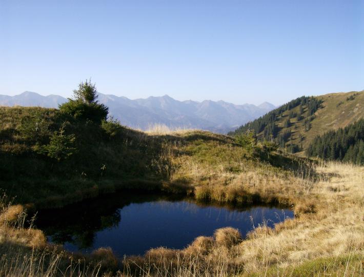 | Pause am Teicheggsattel. Hier hätte ich laut Plan meine erste Nacht verbringen müssen. |