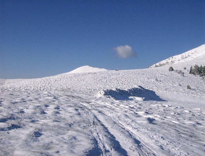 | Nachdem die Piste ca bei 1700m zu Ende ist, heißt es normal weitergehen. Da der Schnee sehr fest ist, stellt dies kein Problem dar. Gemütliche Sache, nur.. es beginnt zu winden. |