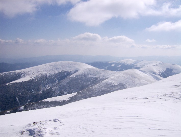 | Der Aufstiegsweg. Links Speikkogel, dann Mulde, dann Hofalmkogel. |