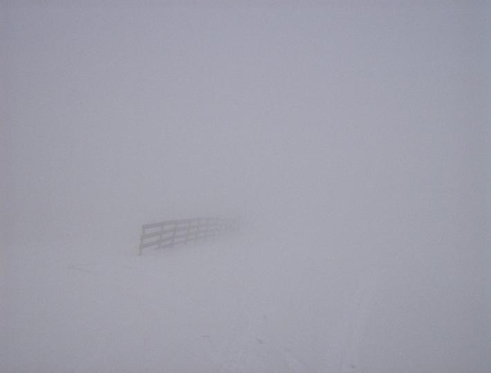 | Durch den vor einer Stunde eingesetzten Schneefall sieht man hier auf der Autobahn jetzt noch weniger als beim Aufstieg. |