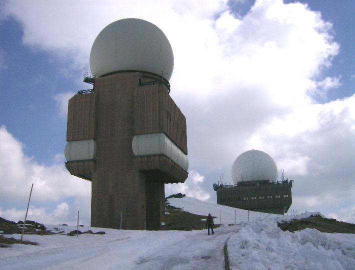 | Die Antennen unserer "Goldhaube". Schon a bissl groß die Dinger...Man beachte Matthias daneben. |