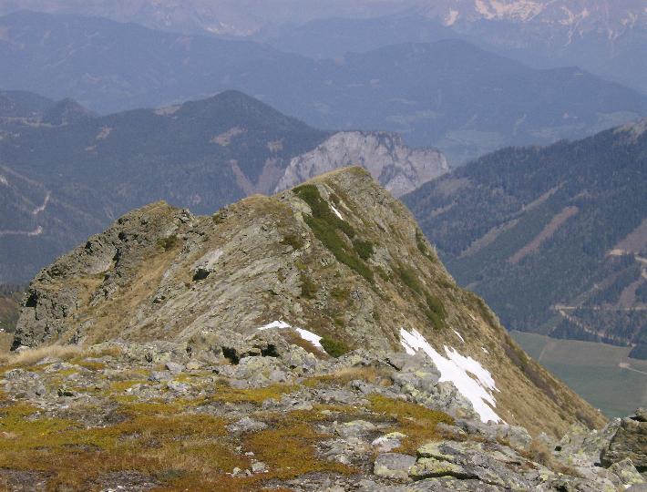| Blick zurück. Ja genau: Über den höchsten Spitz muß man drüber. |