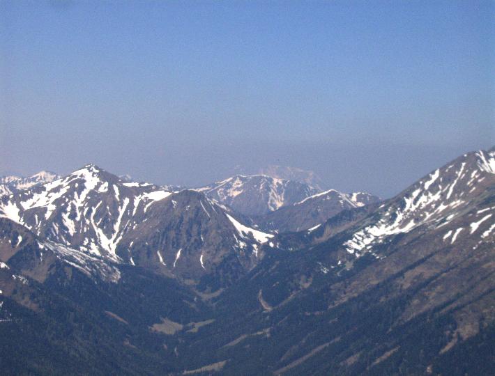 | Zinkenkogel(2233m) und Perwurzpolster. Dahinter Wirtsspitze?. Im Dunst der Grimming. |