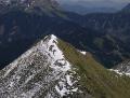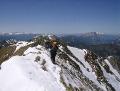 | Ich beschließe, mir den weiteren Grat nicht anzutun, und keine Überschreitung zu machen. Das kann ich auch, wenn der Grat trocken ist. Mit Steigeisen rutsche ich über die Felsen, ohne über den Schnee. Naja muß nicht sein, denn.... |