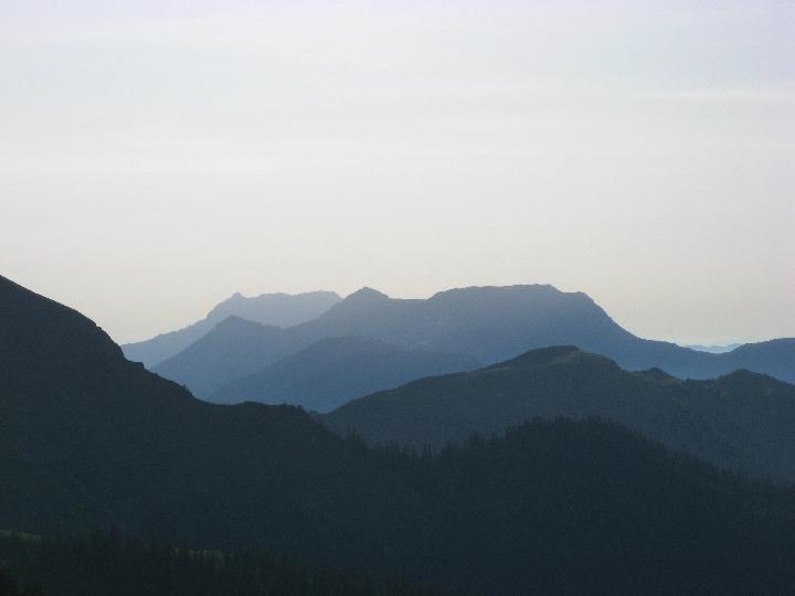 | Silhouette Eisenerzer Reichenstein, davor Stadelstein und Wildfeld. |