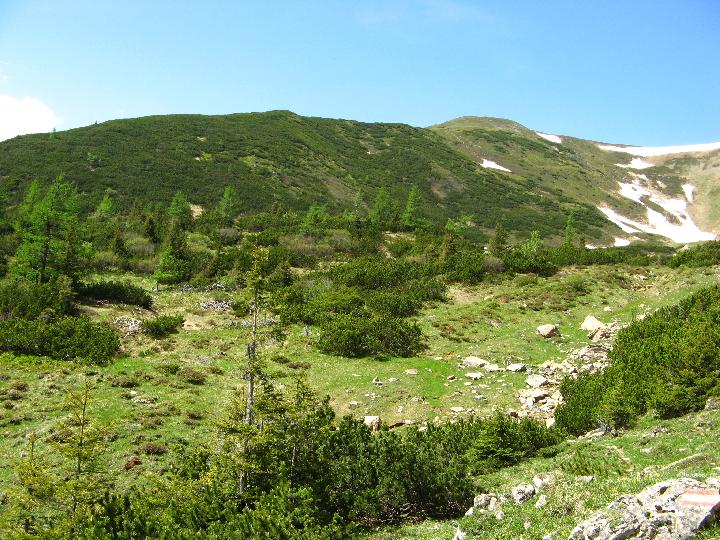 | Zunächst sanft, dann immer steiler werdend geht es durch den Graben empor. |
