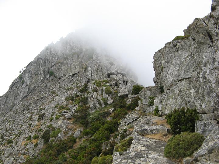 | Aber jetzt wird's interessant... Der Galera (966m) bäumt sich vor mir auf. Aus der Strandperspektive weiß ich, dass es da steil raufgehen muß. |
