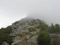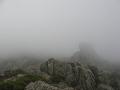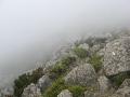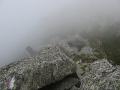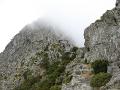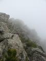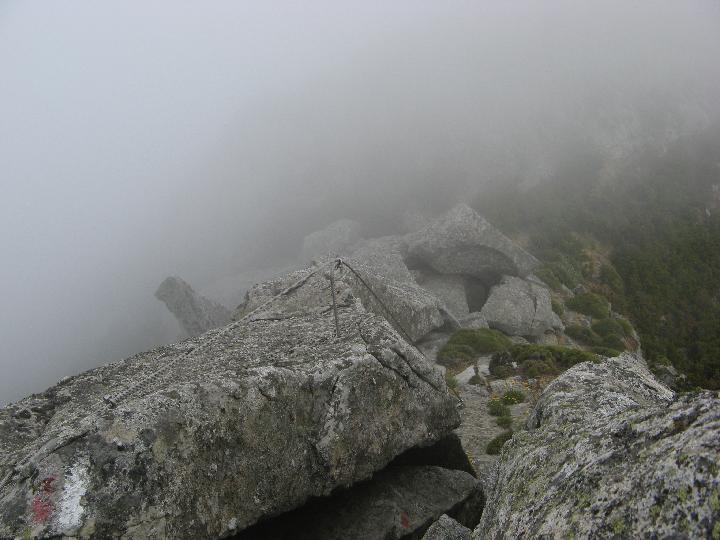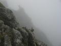 | Blick hinunter. Das Seil ist nicht verkehrt. Mit dem Nebel zusammen wirkt der Steig fast alpin . |