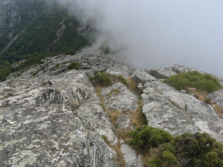 | ...sehr steil klettert man am Seil hinunter. |