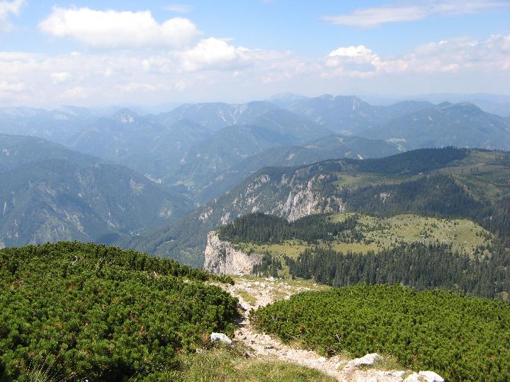| Weiter geht es nun steil über ein wenig Geröll durch Latschen. |