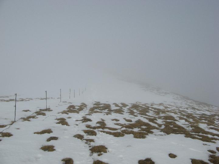 | Am Weißenstein. Jo, ein bissl mehr weiß, aber die Schneeschuhe bleiben verpackt. Der Schnee ist fest und einfach zu gehen. |