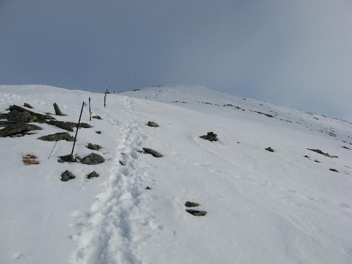 | Nun bekommt die Tour doch noch winterlichen Charakter. Steiler Aufstieg. An die 162 Puls ist jetzt nicht zu denken. |
