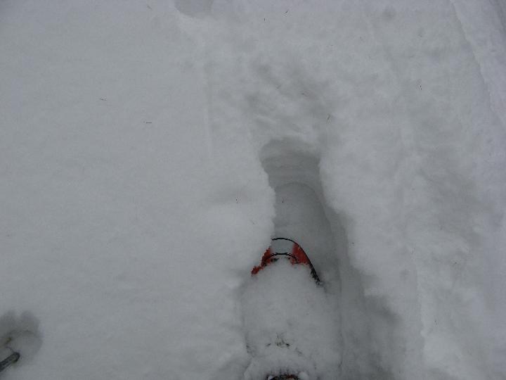 | Ich versinke immer tiefer. Trotz Schneeschuhen ist jeder Schritt heute harte Arbeit. (1-Schritt machen 2- tiefer stapfen 3-Belastungswechsel) |