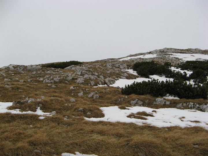 | Auf den letzten, aperen, Metern zum Gipfel lege ich nun erneut die Schneeschuhe wieder ab. |