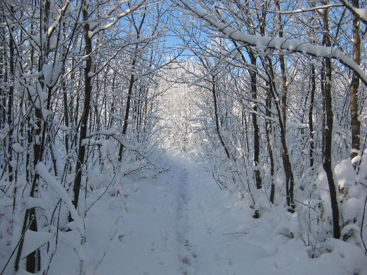 | Durch eine Schneeallee geht es die letzten Meter hinauf. |