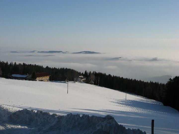 | Nach den ersten Höhenmetern sieht man hinab ins Nebelmeer. |