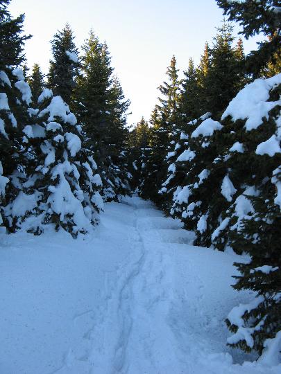| Es folgt eine mühsamere Waldetappe. Zum Glück ist bereits vorgespurt. |