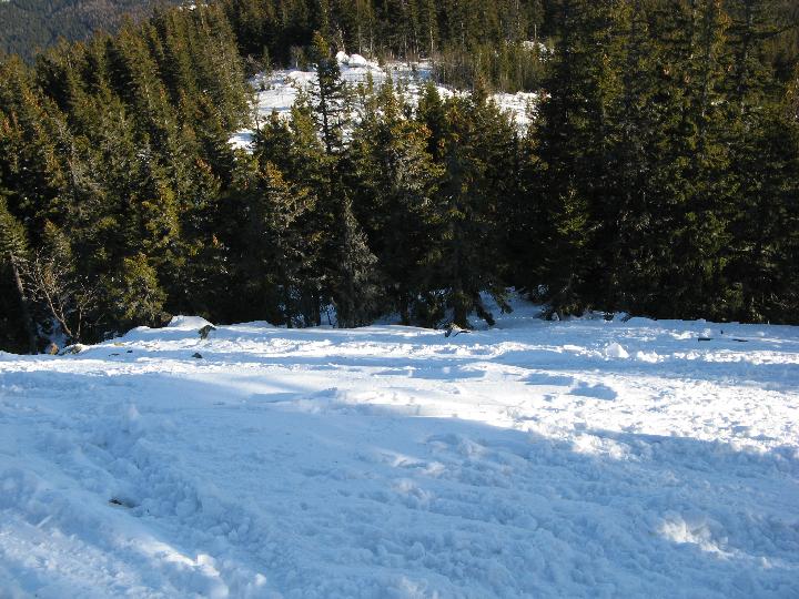 | Hier geht es ordentlich hinunter. Ski wären mir jetzt lieber als die Schneeschuhe. |