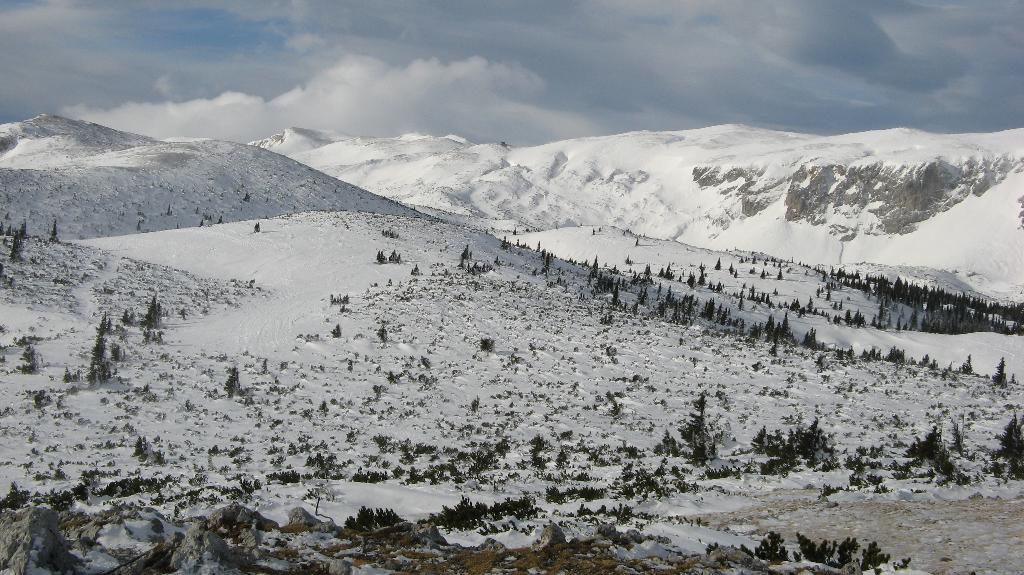 | Blick zu den Lechnermauern. Der Gupf im Hintergrund ist der Predigtstuhl. |