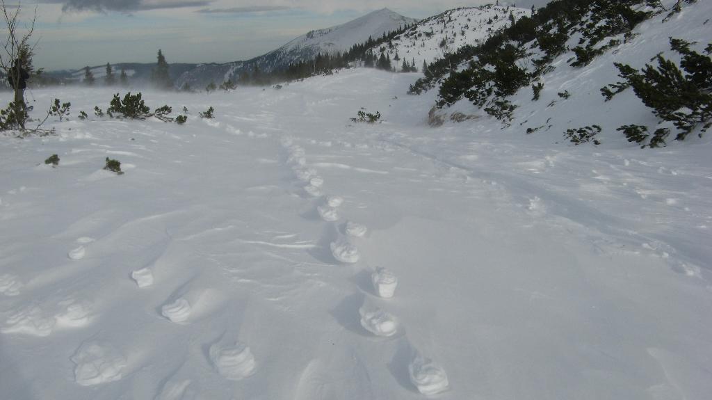 Inverse Spuren im Schnee.