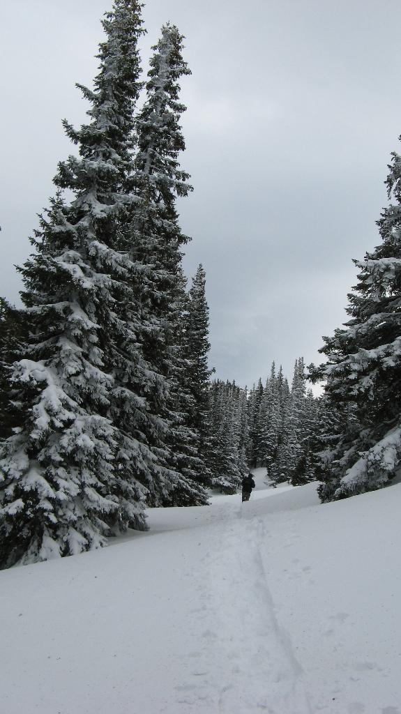 | Ein Stück des Weges geht nun durch den Wald. Hier läßt der Wind endlich spürbar nach. |