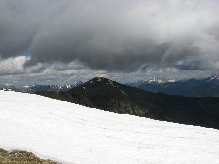 | Aber das da.... Blick zur Seite. Die Entscheidung fällt. Ich steige über das Brandstätterkar ab. Genau vor einem Jahr (Sa., 26.5) bin ich vor einem Gewitter am Eisenerzer Kamm geflüchtet. Ein solches Erlebnis spare ich mir heute lieber, zumal ich im Mai 2007 ohnehin schon.... |