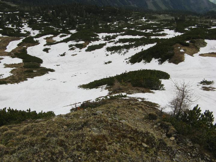 | Über Schnee, Matsch und kleine Bächlein führt nun der Abstieg. |
