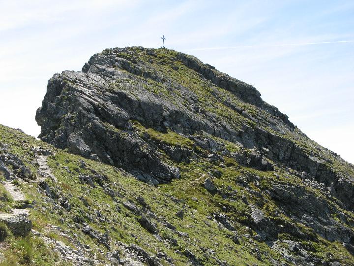 | Die letzten Meter... werden teilweise versichert über die Felsplatte links überwunden. |