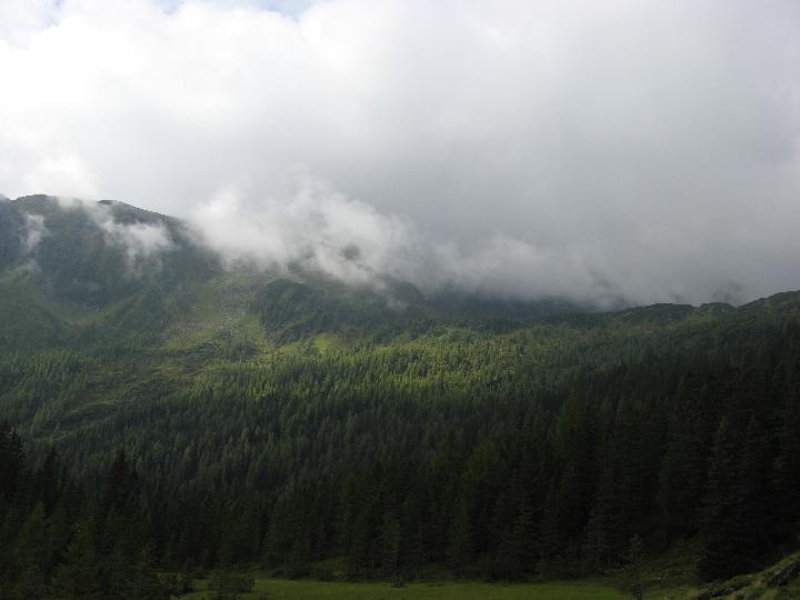 | Die Wolken verhüllen die oberen Regionen. Wir hoffen, dass es aufklart. |