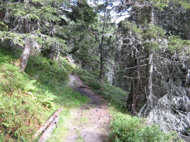| Nun geht es wieder durch den Wald hinunter. |