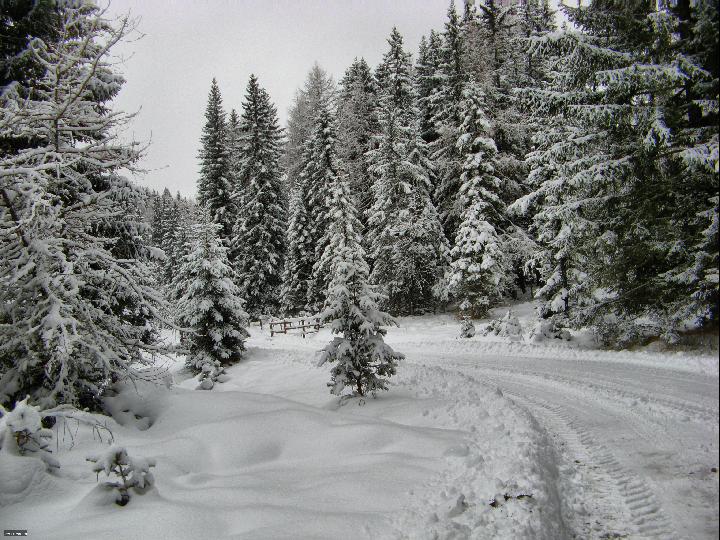 Winterwald. Hier ist sogar ein Stück Straße geräumt.