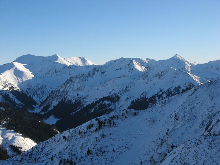 | Links Hohenwart, dann Eiskarspitz und rechts die Hochweberspitze. |