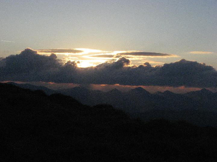 | ...kann ich gleich im Liegen eine Reihe Fotos machen. Interessant ist der Lichtvorhang unterhalb der scharf begrenzten Wolken. Die Sonne versteckt sich einstweilen noch. |