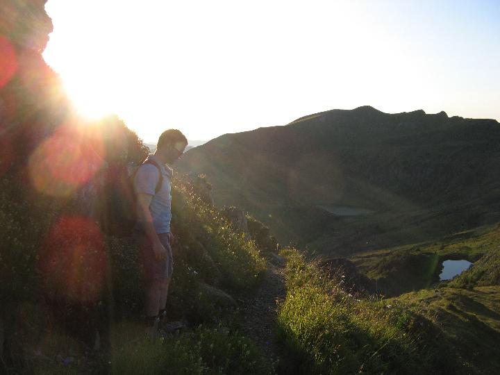 | Nach einer kurzen Rast (Gipfelvideo auf der Hauptseite), steigen wir den Grat Richtung Sünser Joch ab. |