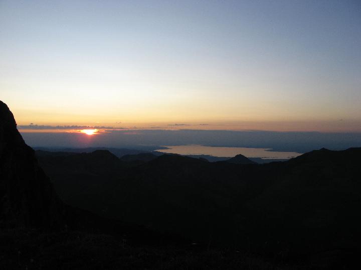| Trotzdem schaffen wir es nicht ganz bis zum Gipfel bei Sonnenuntergang. Zum Glück erhaschen wir jedoch diesen Blick mit Bodensee. |