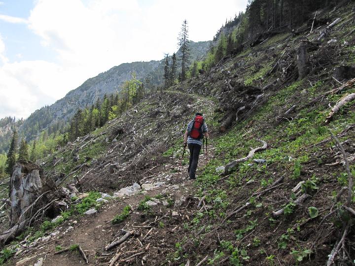 Dann kommen wir an eine gerodete Lichtung. Von nun an geht es zick zack. Manchmal auch nur zick. ![]() |