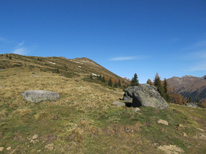 Bis zur Hütte sind wir die Forststraße raufgegangen, ab nun steigen wir mehr oder weniger gemütlich den Rasenrücken hinauf. ![]() |